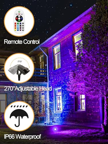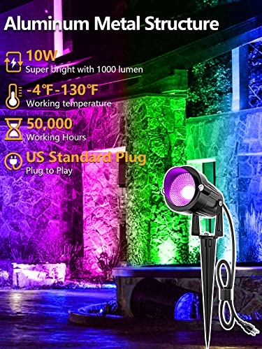 ZUCKEO 10W RGB Color Changing Landscape Lights, Outdoor Waterproof LED Spotlights with Remote & Plug for Garden, Yard, Patio, Driveway, Birthday & Holidays Decoration