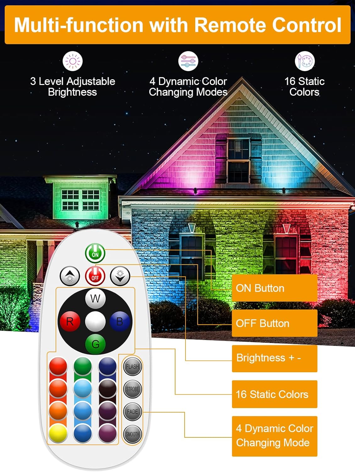 • 【IP66 Waterproof】The thick aluminum body for durability and corrosion-resistant. The IP66 waterproof rating greatly improves the stability of outdoor lighting, extending the service lifespan of RGB landscape lights.