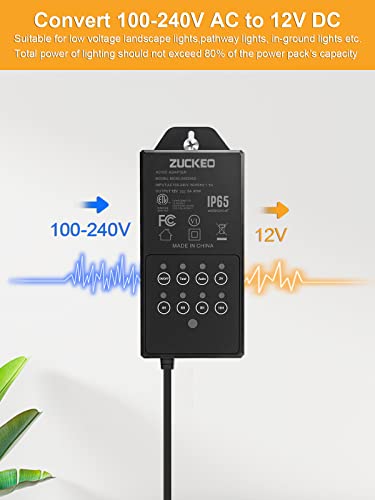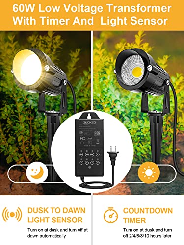 ZUCKEO 60W Low Voltage Landscape Transformer with Timer & Photocell Sensor, 100-240V AC to 12V DC Outdoor Landscape Lighting Transformer LED Transformers for Spotlight Pathway Well In-ground Lights