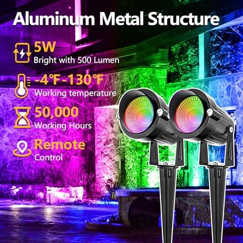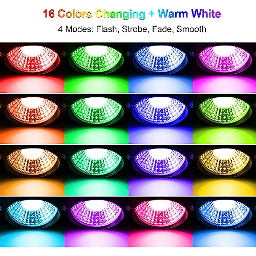 • 【16 Color Changing】These multi-color landscaping lights are designed with 4 color change modes (flash/strobe/fade/smooth) and 16 rgb colors. RGB for all parties or holiday decoration and warm white for daily use.